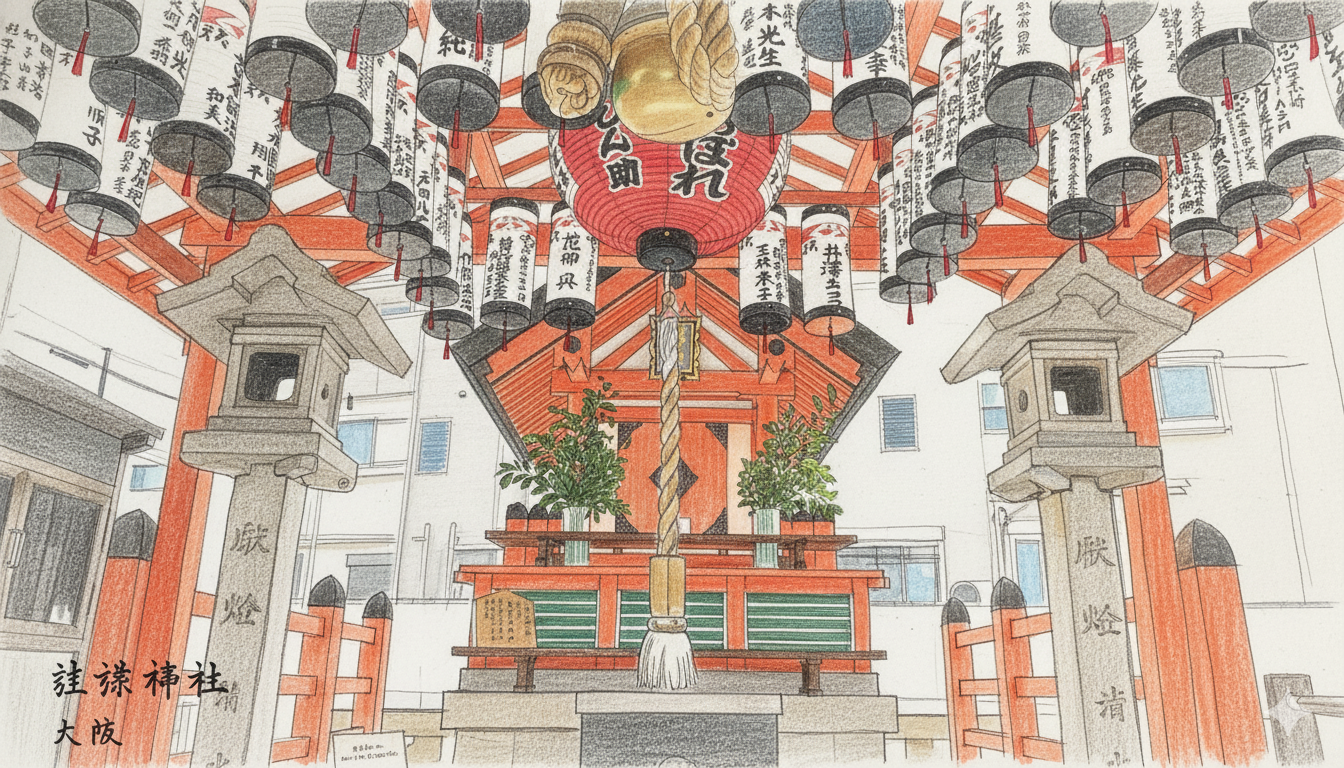 Resulta casi inconcebible hoy en día, pero el camino principal (潮岡道, Omotesando) del Gran Santuario Sumiyoshi, uno de los más antiguos y venerados de Japón, se encontraba antiguamente a orillas del océano. Era el umbral donde los marineros, mercaderes y enviados imperiales daban gracias a los dioses del mar tras una travesía exitosa. Caminar hoy por este sendero es, en esencia, recorrer la antigua línea de marea de Osaka, un "fósil viviente" de una costa que ha retrocedido kilómetros debido a la sedimentación natural y a la incesante recuperación de tierras. A su lado se extiende el Parque Sumiyoshi, el más antiguo de Osaka, inaugurado en 1873. Este espacio verde, hoy un remanso de paz para los ciudadanos, fue construido en lo que originalmente era el campo de caballos del santuario, ilustrando la profunda transición de un espacio sagrado a uno público y secular durante la era de la modernización Meiji.