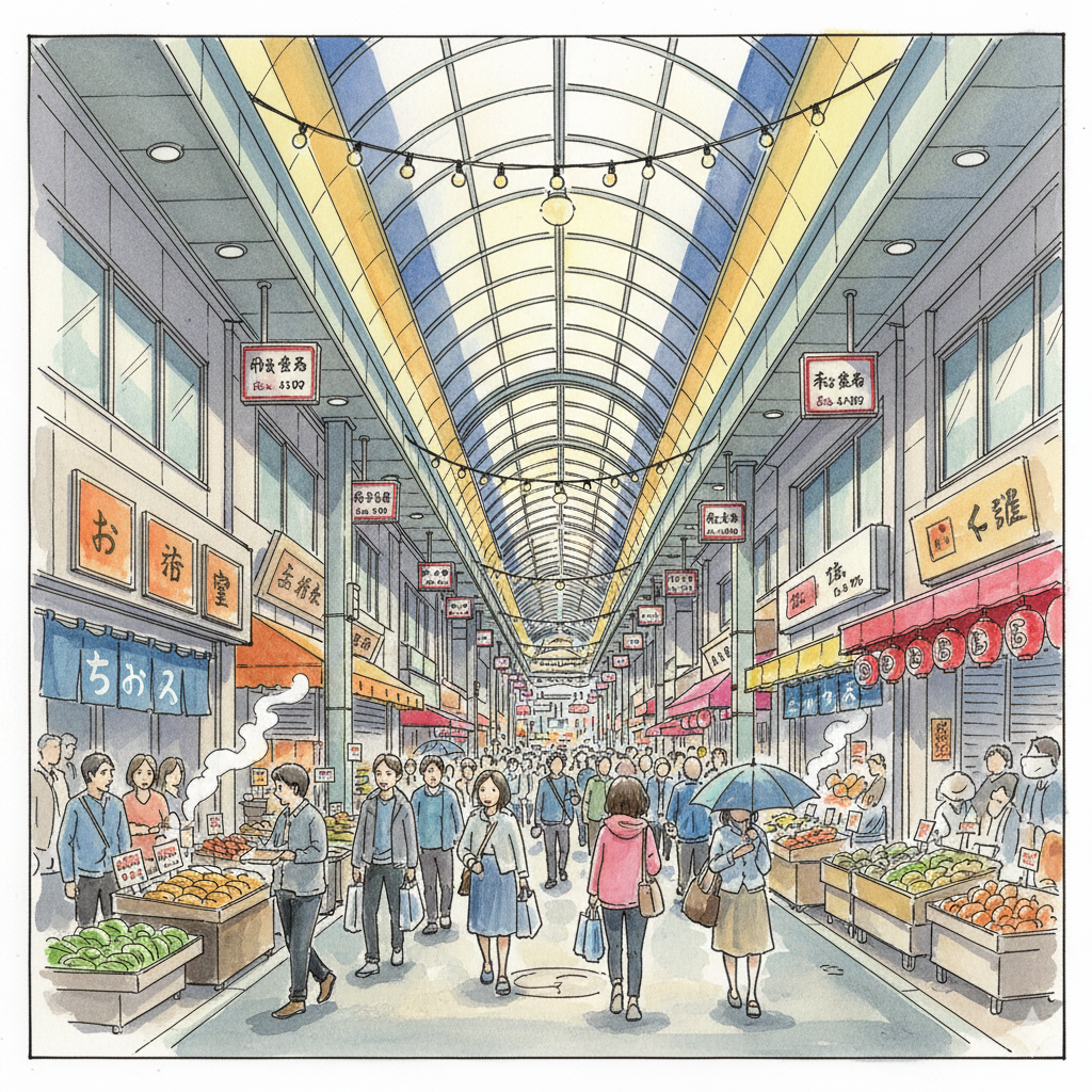 This place is Sembayashi Shopping Street, the ultimate embodiment of Osaka’s unyielding commercial soul. Its enduring vibrancy is no accident. Thanks to its strategic location between two major train lines, the street has long been a hub of local life. While modern retail pressures have hollowed out many similar places, Sembayashi continues to thrive, powered by its famous and energetic "barking" (叫賣) sales culture. The air hums with the overlapping, rhythmic calls of vendors hawking their wares, the clatter of goods changing hands, and the good-natured laughter of shoppers—a symphony of authentic commerce. It remains a place of connection, regularly hosting community events like the Sembayashi Festival.