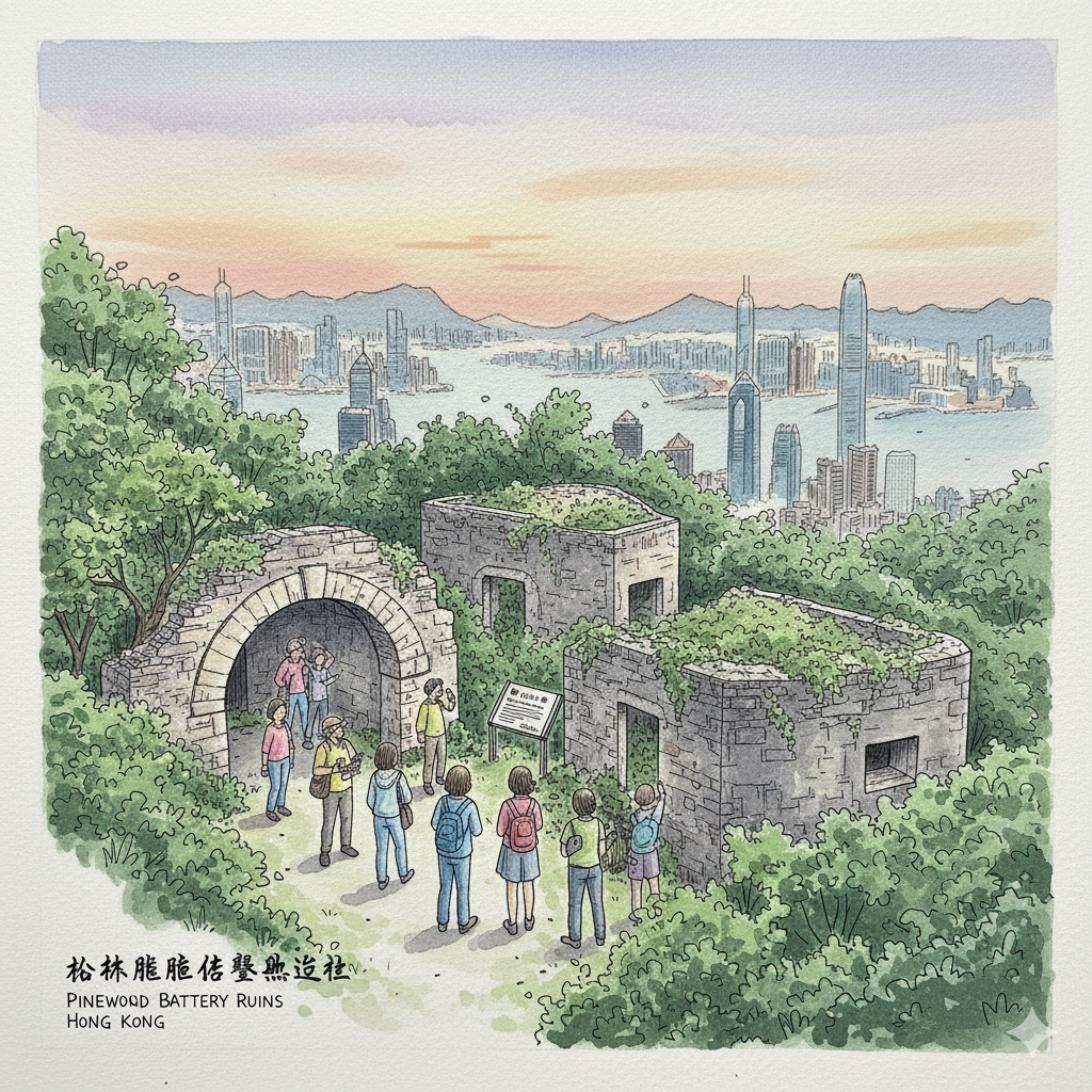 松林砲台は、香港の全沿岸防衛砲台の中で最も高い場所(海抜307メートル)に位置します。1903年から1905年にかけて、対岸の鯉魚門砲台と連携してビクトリア・ハーバーの西側航路を防衛するために建設されました。1920年代には、来るべき航空戦の時代を見越して対空砲台に改修されるなど、戦略的に重要な拠点でした。